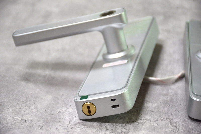 Замок завчасно попередить про низький заряд. Для аварійного відкриття передбачено механічний ключ і можливість підключити живлення через Micro USB.
