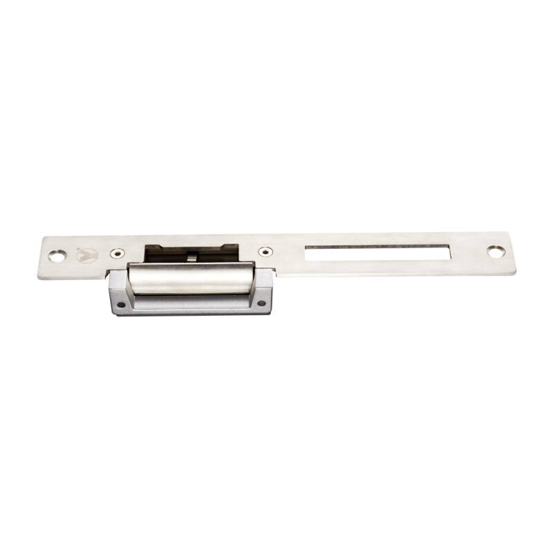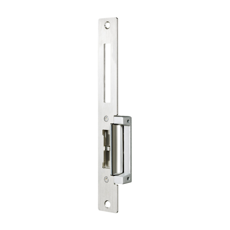 YS-138LK-S – врізна електромеханічна защіпка з довгою планкою з датчиком стану дверей. Сила утримання до 1000 кг.