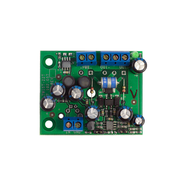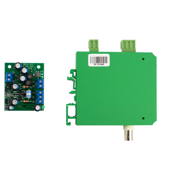 Одноканальний комплект для передачі відеосигналу по кабелю звитої пари UTP, FTP, SFTP, ТППЕП і аналогічного до 2200 м, вбудований грозозахист 5 кВ, широкий діапазон живлень, індикація наявності відеосигналу, оперативні регулювання на лицьовій панелі, опційний додатковий відеоканал на виході приймача. Подальше збільшення відстані передачі (до 5-6 км) може бути досягнуто шляхом ретрансляції, використовуючи 2-3 комплекти. У комплект входить: кодер TWIST-22 TX, декодер TWIST-22 RX. Можлива поставка з кодером в бризкозахищеному IP-66 корпусі TWIST-22 TX IP. Напруга живлення: кодер TWIST-22 TX, TWIST-22 TX IP: 11-24В DC; декодер TWIST-22 RX: 11-24В DC. Габаритні розміри: кодер TWIST-22 TX: 56 х 46 х 20 мм; кодер TWIST-22 TX IP: 117 x 88 x 44 мм; декодер TWIST-22 RX: 115 x 103 x 23 мм