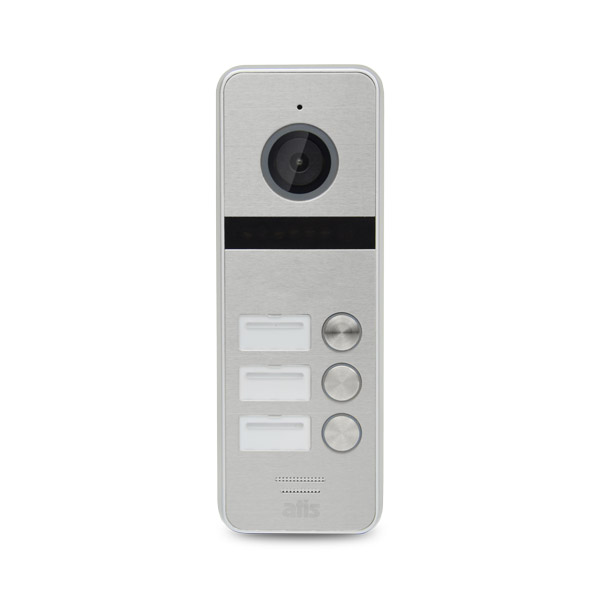 Кольорова відеопанель AT-403HD Silver на 3 абоненти з високою роздільною здатністю HD 1280x720 і широким кутом огляду 120°. Спосіб монтажу накладний. Колір корпусу відеопанелі - срібло..