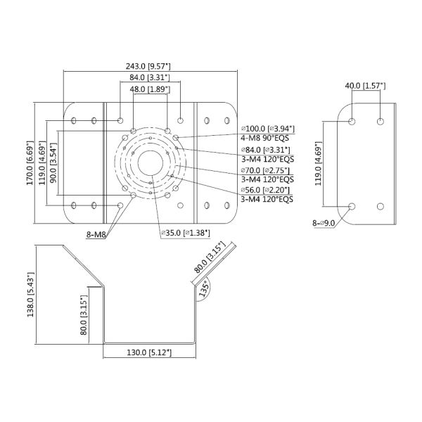 Кутовий кронштейн Dahua DH-PFA151 для встановлення камер