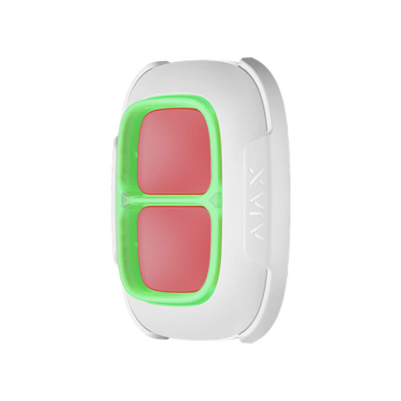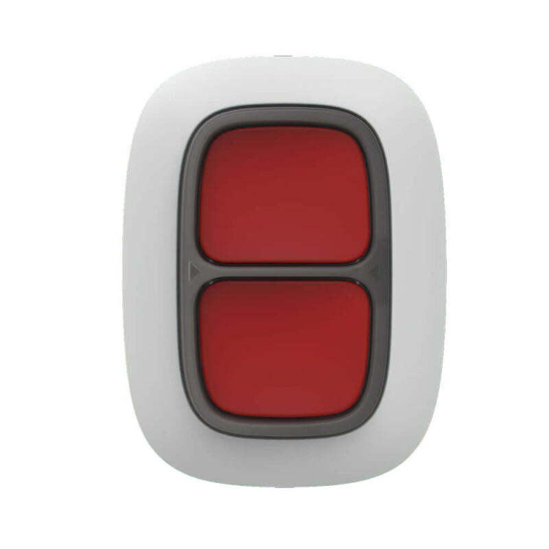 Бездротова екстрена кнопка DoubleButton white з просунутим захистом від випадкових натискань. Використовує бездротовий протокол Jeweller з дальністю зв'язку до 1300 м на відкритому просторі.