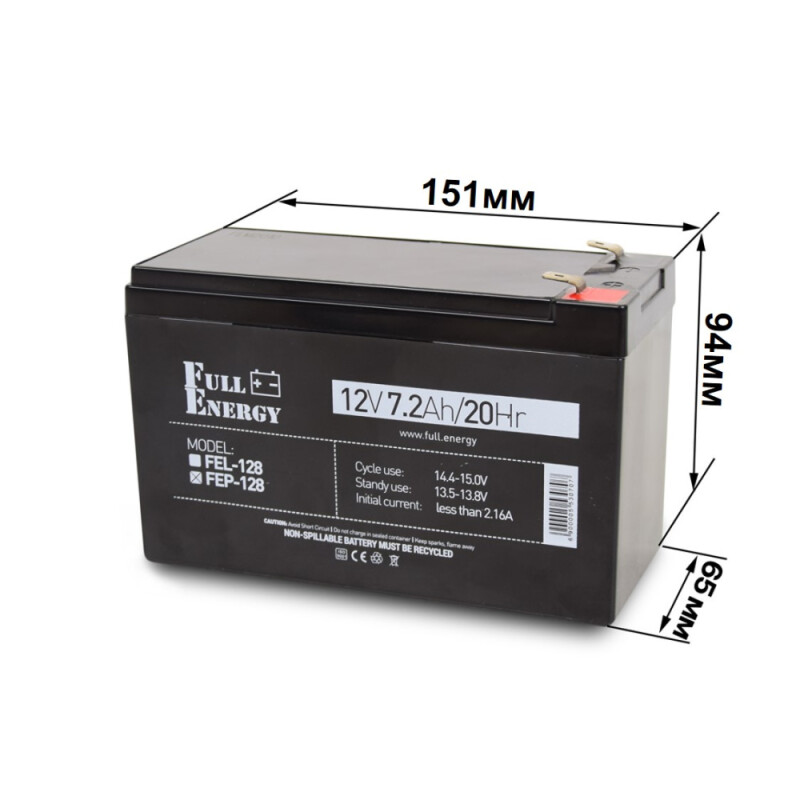 Акумулятор 12В 7.2 Аг для ДБЖ Full Energy FEP-128