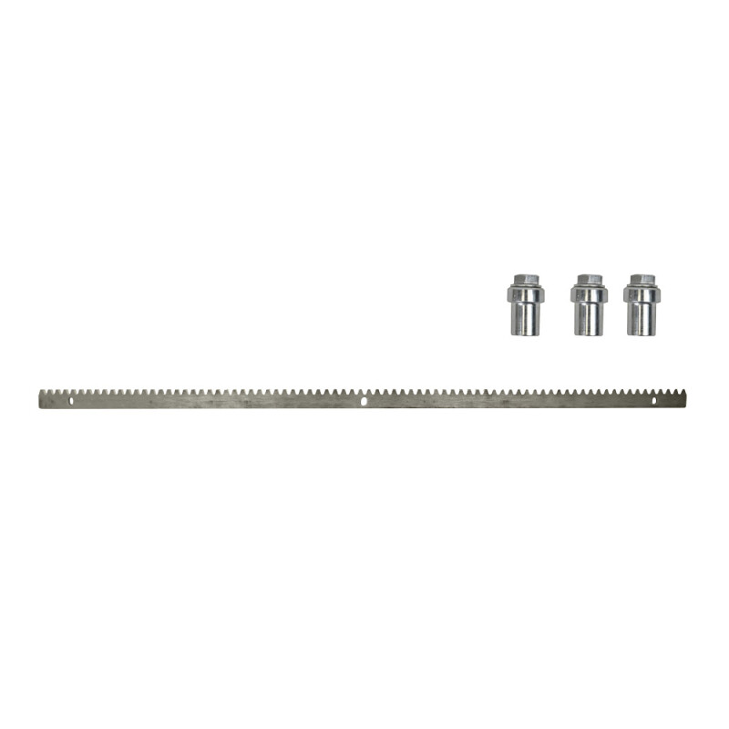 Сталева рейка зубчаста для відкатних воріт, довжина 1 м. Призначена для зв'язку автоматики (привода) зі стулкою воріт.