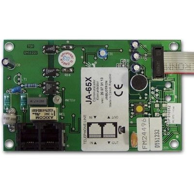 Цифровий комунікатор JA-65X призначений для охоронних контрольних панелей JA-63 і JA-65. При встановленому JA-65X, контрольна панель здатна передавати інформацію на ПЦС, відправляти голосові повідомлення і здійснювати зв'язок з віддаленим ПК. Для виконання цих функцій, модуль повинен бути підключений до стандартної аналогової телефонної лінії