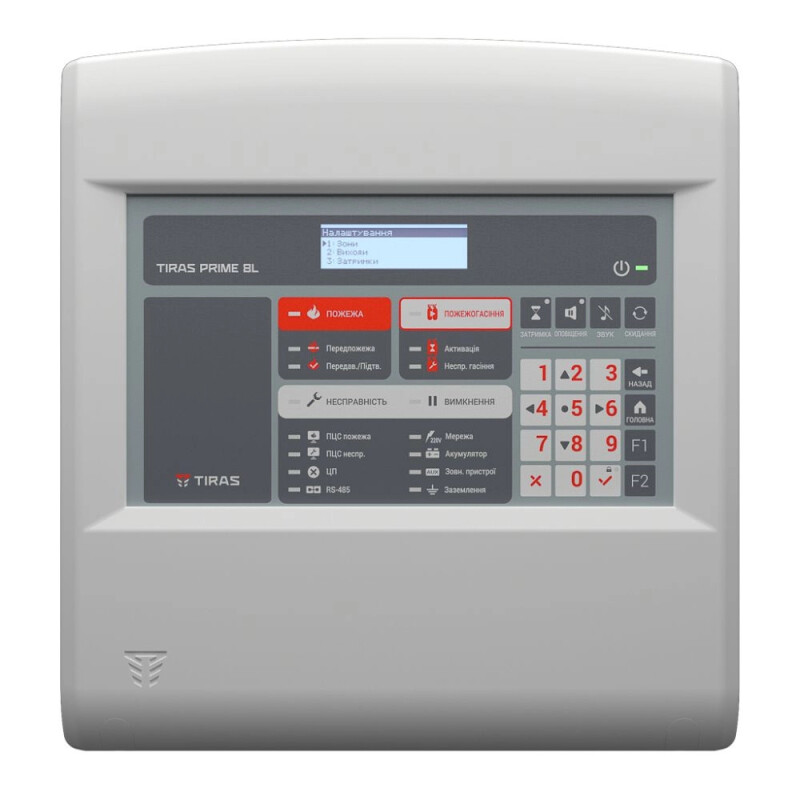 Тірас PRIME 8L - прилад приймально-контрольний пожежний. 8 базових зон пожежної сигналізації з можливістю розширення до 20 зон з використанням модуля M-Z (f). Три типb верифікації спрацювання. 2 релейних програмованих виходи. Контрольовані виходи «Пожежа», «Несправність».