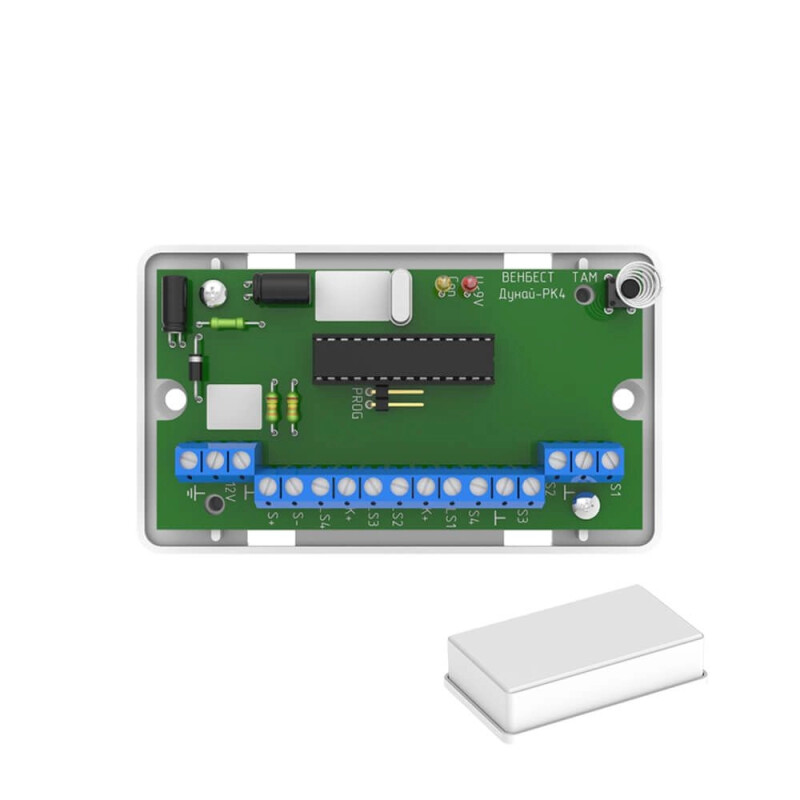 Адаптер «Дунай-РК4» призначений для поєднання ППК з клавіатурами типу «Дунай-КА» або іншими пристроями, вихідним виконавчим елементом яких є контакт реле. Клавіатури (пристрої), що підключаються, виконують функцію взяття / зняття під охорону однієї групи шлейфів. До адаптера може бути підключено до чотирьох клавіатур (пристроїв).