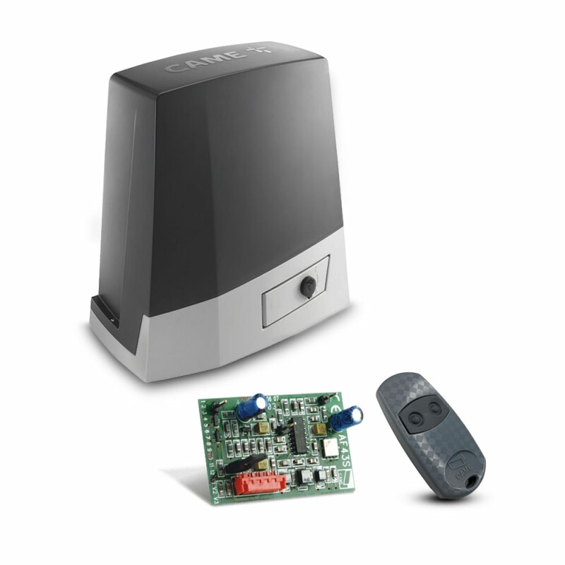Комплект автоматики для відкатних воріт шириною до 20 м і вагою до 2500 кг BKV-2500M. До складу комплекту входять: привод з магнітними кінцевиками із вбудованою панеллю керування BKV25AGS, одноканальний радіоприймач AF43S, двоканальний пульт дистанційного керування TOP-432EE.