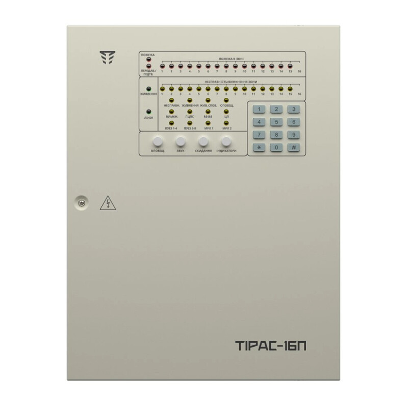 ППКП «Тірас-16П» розроблено відповідно до вимог ДСТУ EN54-2, EN54-4.