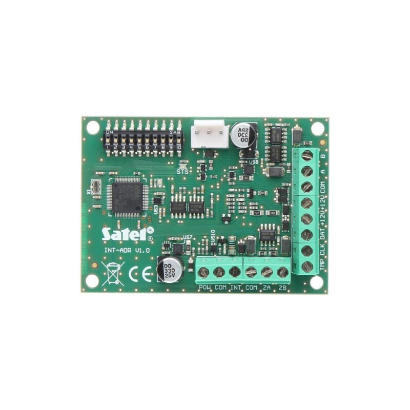 ПризначенняМодуль призначений для підключення адресних сповіщувачів для приймально-контрольних приладів серії: INTEGRA і INTEGRA Plus. Пристрій замінює модуль CA-64 ADR. Застосування INT-ADR полегшує прокладання кабелів, особливо в разі розширених систем. Шина адресних сповіщувачів незалежна від шини модулів розширення приймально-контрольних приладів, що дозволяє побудувати гібридні системи, тобто з'єднувати адресні датчики зі сповіщувачами, що мають класичне чотиридротове підключення.