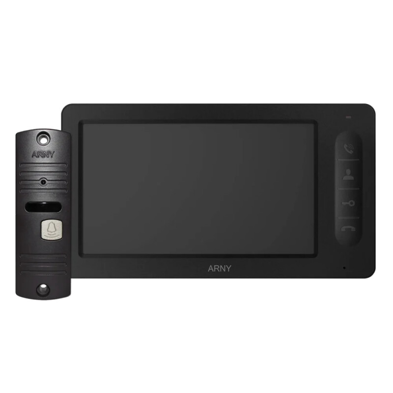 Комплект AVD-7005 (чорний/сірий) складається з кольорового відеодомофона AVD-705 з сенсорними кнопками керування і кольорової панелі виклику AVP-05. Колір домофона чорний. Компанія-виробник Arny.