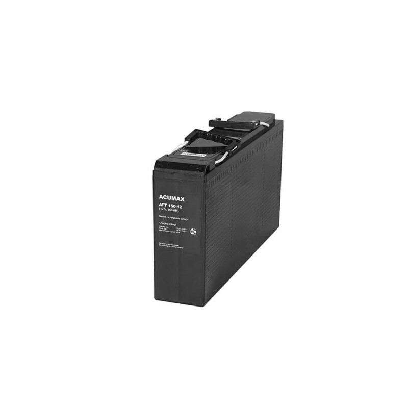 Акумулятори ACUMAX® серії AFT AGM виготовлені за технологією Absorbed Glass Mat, що означає, що електроліт укладений у сепаратори зі скловолокна. Їхня особлива форма (передня клема), що характеризується компактним дизайном, тобто невеликою шириною, великою довжиною і висотою, робить їх ідеальними для установки в шафи 19" і 23". Крім того, передній виведення клем робить батарею швидкою та простою в установці та використанні. На додаток до унікальної форми серія AFT AGM також характеризується тривалим розрахунковим терміном служби від 10 до 12 років (згідно з Eurobat, група «Very Long Life»), високими розрядними струмами та високою щільністю енергії, що робить їх ідеальними як резервне джерело живлення в телекомунікаційних електростанціях (48 В постійного струму).