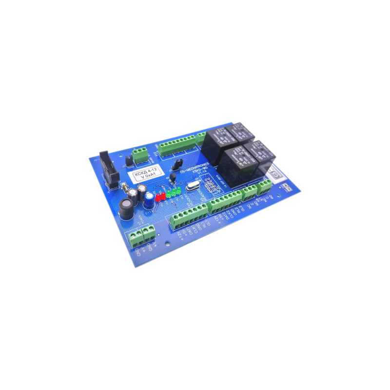 Універсальний контролер КС Мехатронікс КСКД4-12К (ДМ) з прошивкою ДМ-01 для роботи з дверима. Працює під керуванням контролера верхнього рівня КВ-02Net. До контролера можна відключити два виносних зчитувачі СПКС-04/СМКС-04 і два виконавчі пристрої. У пластиковому боксі.