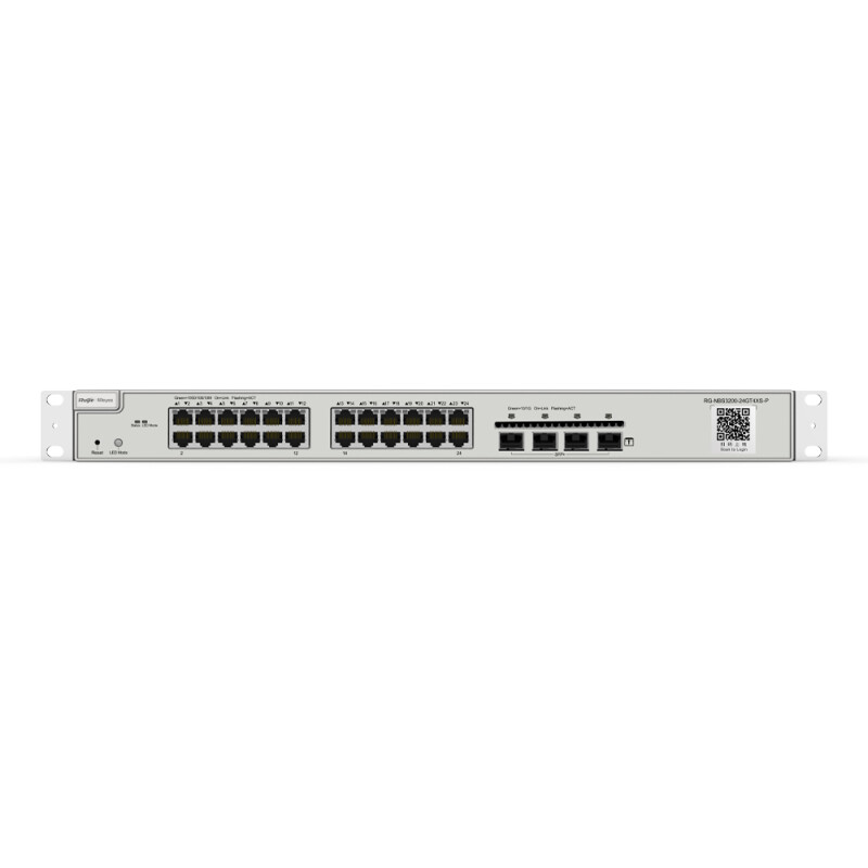 RG-NBS3200-24GT4XS-P підтримує безліч функцій, включно з VLAN, QoS, Link Aggregation, IGMP Snooping, Port Mirroring тощо, що забезпечує можливість налаштування мережі відповідно до вимог користувачів і підвищує продуктивність мережі.