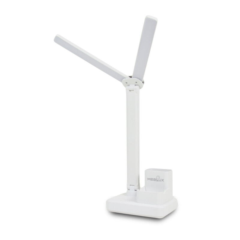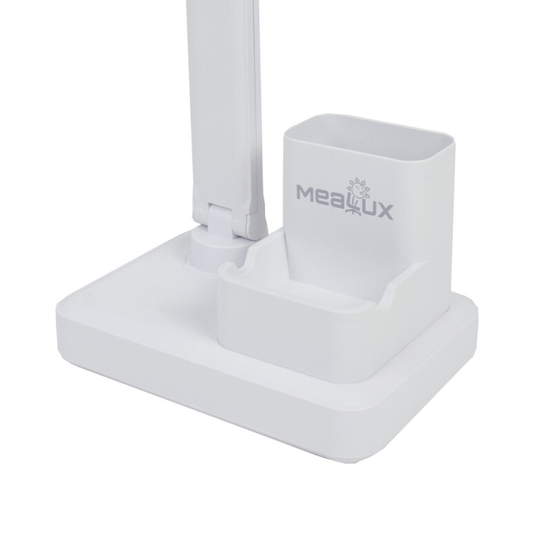 Акумуляторна складна настільна лампа з підставкою для олівців Mealux DL-17 - це поєднання стилю, зручності, безпеки та креативу. Лампа Mealux DL-17 дозволяє висвітлювати будь-яку робочу поверхню. Високоякісні 32 світлодіоди забезпечують приємний та безпечний світловий потік. Три режими освітлення холодний, теплий та комбінований. Сенсорна кнопка включення лампи багатофункціональна, дозволяє перемикати режими лампи, а також при тривалому натисканні плавно регулює яскравість світлодіодів. Головною особливістю Mealux DL-17 є її основа корпусу, яка виконана у вигляді підставки для олівців та ручок із можливістю встановити смартфон у спеціальне поглиблення. На підставі лампи є кнопка включення та microUSB роз'єм для заряджання. Ніжку лампи можна повертати на 180 градусів. Лампу можна заряджати від блоку живлення, який є в комплекті, а також від повербанків, зарядних станцій або USB порту комп'ютера. Лампа Mealux DL-17 створить комфортні умови на робочому столі, оскільки робота світлодіодів влаштована таким чином, що не утворюються відблиски на поверхні монітора, інших гаджетів, а також на стільниці.