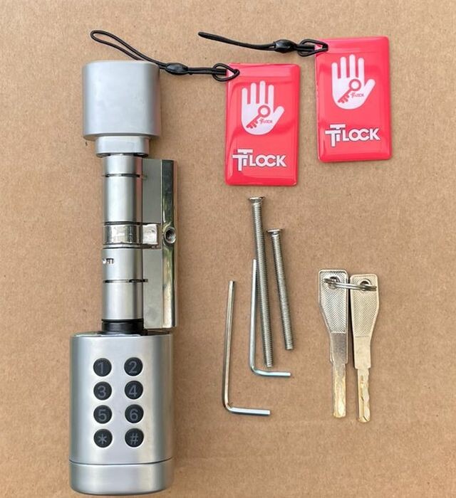 Прості одноразові коди доступу або віддалене розблокування (Wi-Fi) після прибуття. Докладний опис Хочете дізнатися більше про можливості цього смарт-замку? Тоді цей поділ для вас. Електронний циліндр Ttlock MYSTIC PRO — смарт-замок для вашого дому та бізнесу Сучасне рішення для захисту вхідних дверей — електронний циліндр з біометрією, TTLOCK, Bluetooth і RFIDЕлектронний циліндр Ttlock MYSTIC PRO — це нове покоління розумних замків для захисту й контролю доступу до будь-яких приміщень. Модель призначена для швидкого встановлення замість класичної личинки будь-якого стандартного замка. Оновіть свої двері за кілька хвилин — без свердління та зміни фурнітури. Просто замініть стару личинку на Ttlock Mystic Pro й отримайте повний контроль: керуйте замком через смартфон, відбиток пальця, код, RFID-карту, радіо-пульт або онлайн через WiFi.