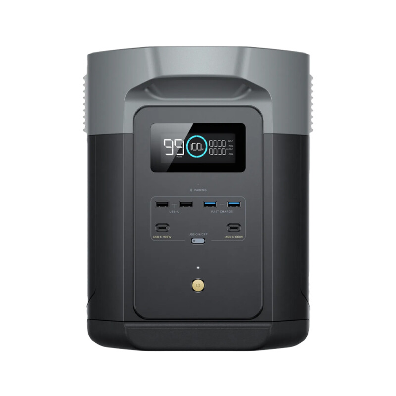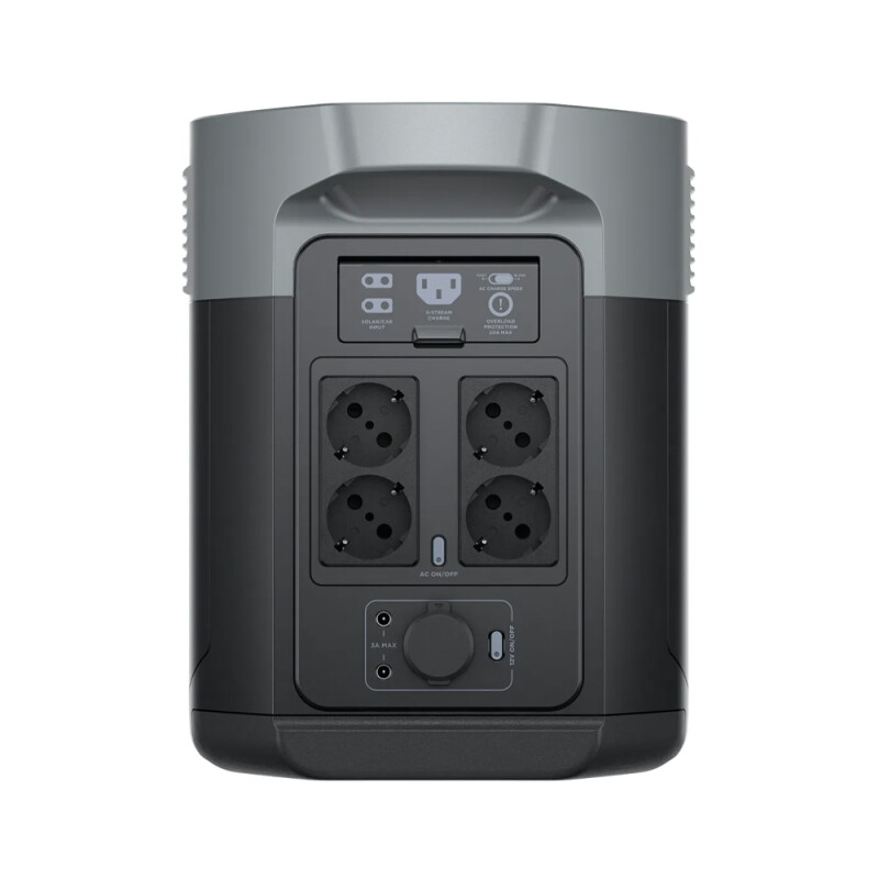 На передній стороні пристрою з боків від дисплея розташовані різні роз'єми. Загалом електростанція має 4 порти USB-A, 2 порти USB-C, автомобільний зарядний пристрій 12 В і вихід DC 5525 12 В постійного струму. Також електростанція має в своєму розпорядженні чотири AC-розетки на задній стороні пристрою, сумісні як зі штекерами європейського стандарту Schuko, так і з роз'ємами, які широко використовуються в країнах Євросоюзу. Загальна потужність цих виходів становить 2400 Вт.