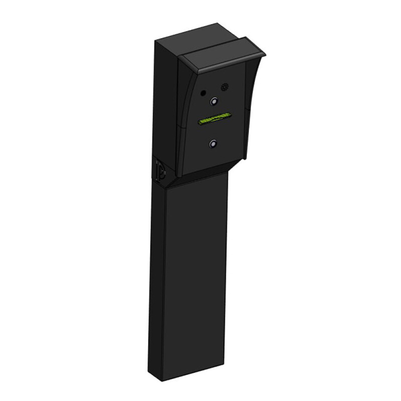 Стійка СВ-01 в'їзної системи ParkingPay являє собою вуличну систему, орієнтовану на в'їзд, і надає додаткові функції, пов'язані з друком паркувальних квитків і зчитуванням QR-кодів для дозволу заїзду.