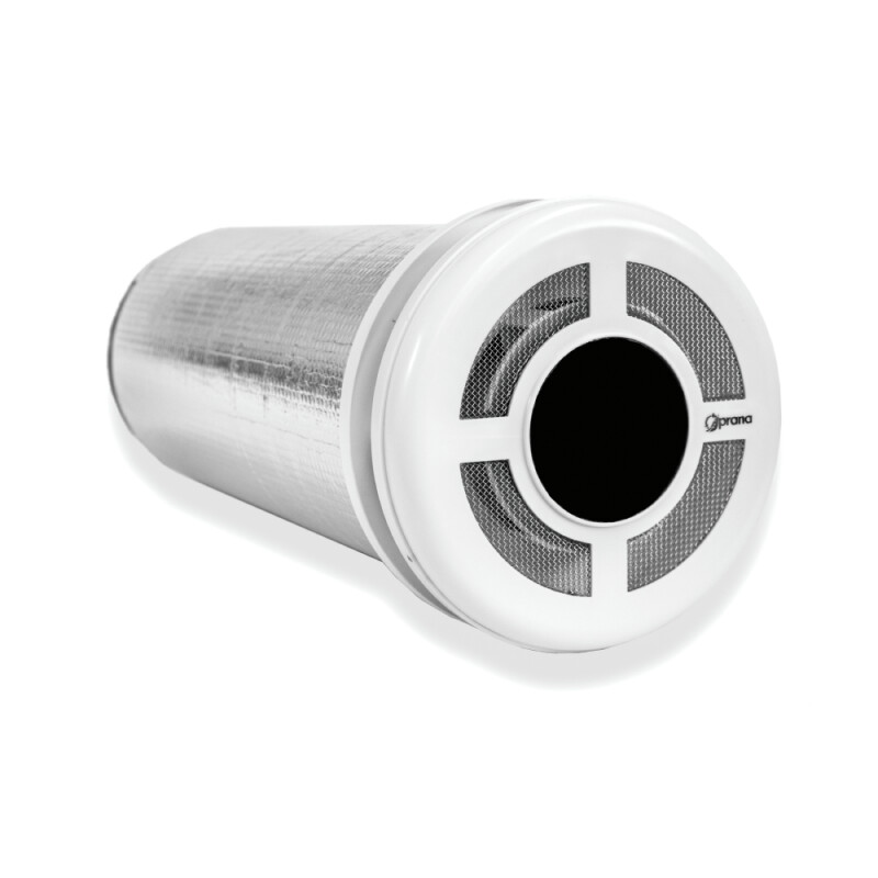 Рекуператор PRANA-200G - система вентиляції з припливно-витяжною функцією з автоматичним закриттям клапана перекриття потоків та дистанційним керуванням через пульт або смартфон (підключення через Bluetooth або Wi-Fi). Ефективність повернення тепла (рекуперації) 97%. Продуктивність приплив - 85 м³/год, витяжка - 76 м³/год. Потужність 3.2 - 74 Вт/год, рівень шуму 8 дБ.