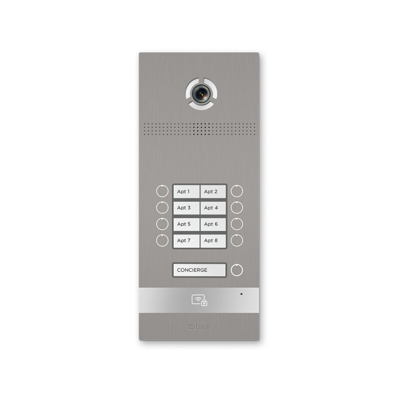 Багатоабонентська алюмінієва панель виклику BI-08FB silver з функцією розпізнавання облич, з високою роздільною здатністю 2 Mpx, з механічними кнопками з підсвічуванням, з підтримкою SIP протоколу.