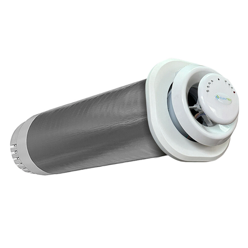 Рекуператор Climtec РД 200+ Стандарт - система вентиляції з фільтром очищення повітря G3, припливно-витяжною функцією з автоматичним закриттям клапана перекриття потоків та дистанційним керуванням. Ефективність повернення тепла (рекуперації) 93%. Продуктивність 240 м³/год. Потужність 30 Вт, рівень шуму 32 дБ.