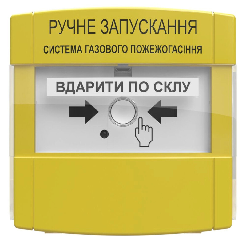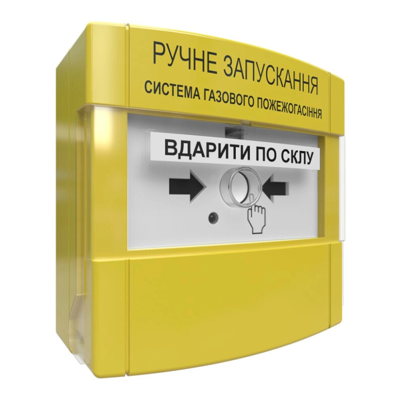 Пристрій ручного запуску пожежогасіння ПРЗ "Тірас" для роботи у складі системи пожежної сигналізації для вибухонебезпечних приміщень. Сертифікат відповідності EN54.