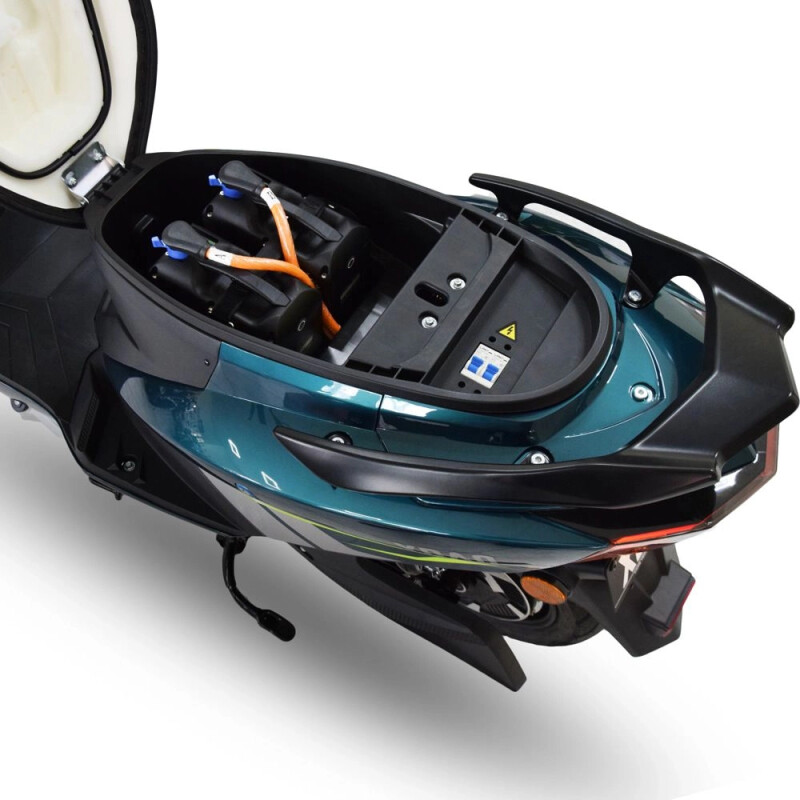 • Потужність і продуктивність: З двигуном потужністю 3000Вт та двома літієво-іонними акумуляторами по 72В і 25А·год кожний, електроскутер забезпечує високу продуктивність і дальність ходу, що дає змогу легко пересуватися як у місті, так і за його межами.