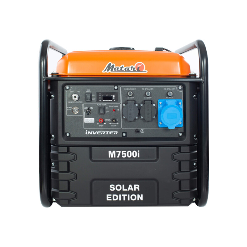 Інверторний бензиновий генератор MATARI M7500I-SOLAR — це універсальний однофазний пристрій з інверторною технологією, призначений не тільки для роботи у звичайному режимі, а і як основне джерело електроживлення для автономних систем незалежного енергопостачання різних об'єктів. Він має унікальну функціональність, що дає змогу автоматично перемикатися між джерелами енергії, включно із сонячними панелями та мережевим підключенням, забезпечуючи безперервне електропостачання.