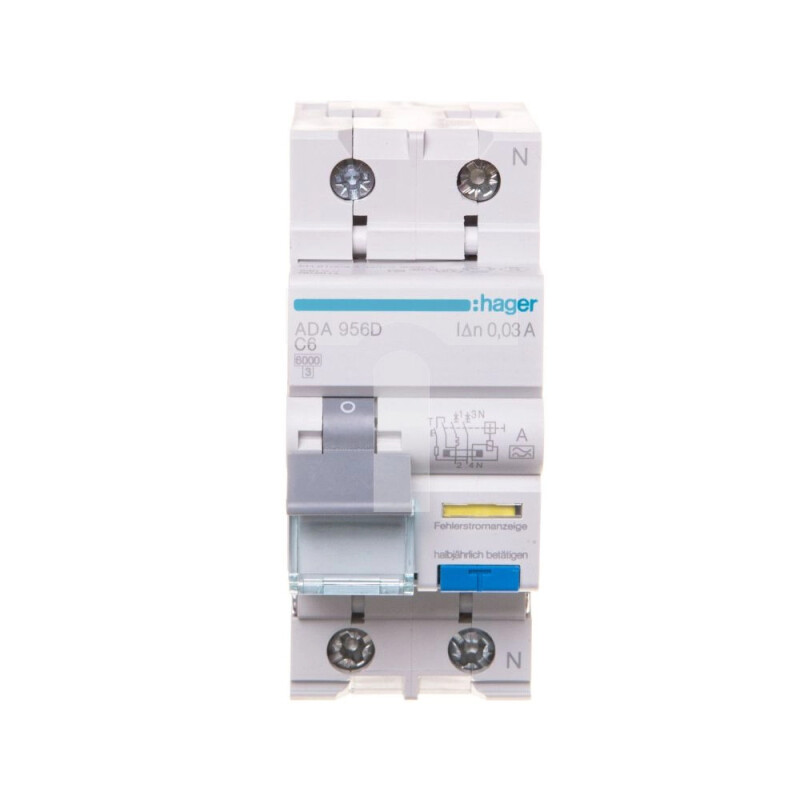 Диференціальний автоматичний вимикач Hager ADA956D встановлюється в електричних щитах на стандартну напрямну DIN-рейку і може використовуватися як для побутових, так і для промислових цілей. Він швидко реагує на перевантаження і короткі замикання, автоматично вимикаючи електричний ланцюг для запобігання загоряння і пошкодження обладнання. Він також може працювати як вимикач для ланцюгів навантаження.