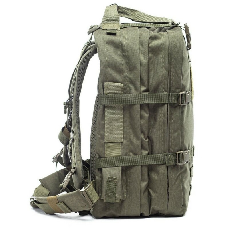 • Матеріал: рюкзак виконаний з особливо міцної тканини Cordura 1000D, розрахованої на використання в агресивних умовах: навантаження, перепади температур, контакт з водою, тертя.