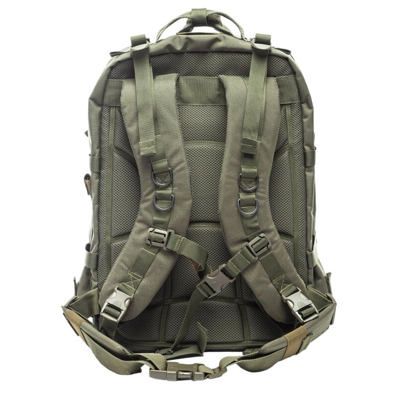 • Задня стінка: 1 фіксована кишеня на блискавці, 1 кишеня-сітка, що фіксує предмети еластичним шнуром-гумкою (шок-корд) зі стопором (кордлок). Зверху кишені є три стропи, які відповідають за регулювання довжини, застібаються на фастекс.