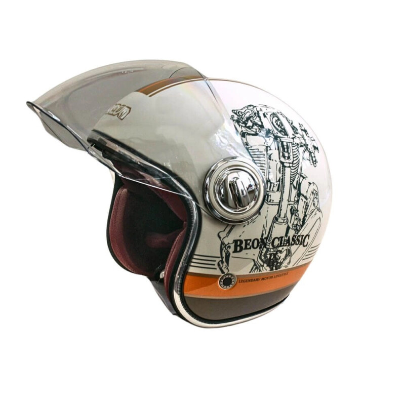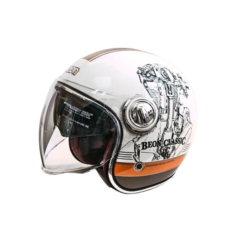 Відкритий класичний шолом 3/4 у ретро стилі виконаний із міцного ABS пластику, відрізняється малою вагою та гарною шумоізоляцією. Має висувний внутрішній тонований візор. Ударопоглинаюча капсула шолома зроблена зі спіненого полістиролу EPS. М'яка знімна внутрішня підкладка виконана з гіпоалергенних матеріалів (штучна шкіра, сітка, велюр), допускає прання при 30 градусах.