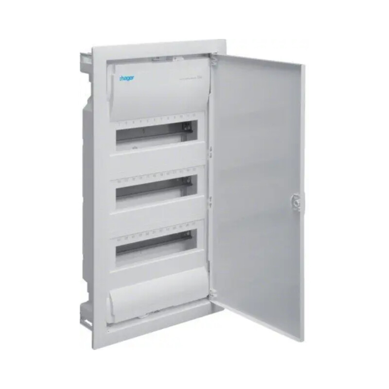Щит на 36 модулів Hager VOLTA VU36UA для внутрішньої установки з металевими дверима та можливістю розширення до 42 модулів.