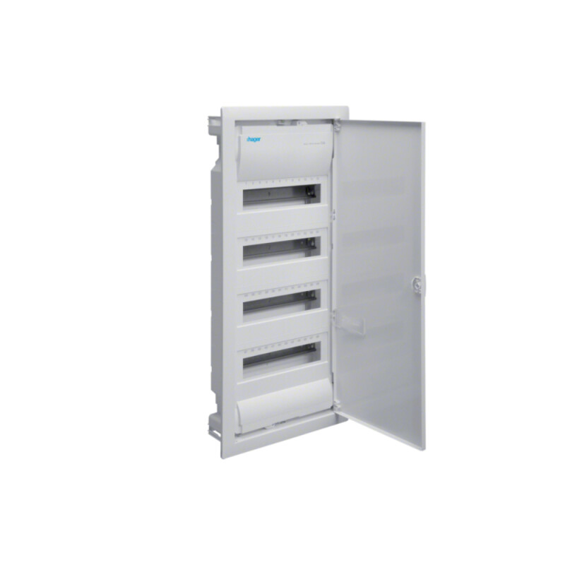 Щит на 48 модулів Hager VOLTA VU48UA для внутрішньої установки з металевими дверима та можливістю розширення до 56 модулів.