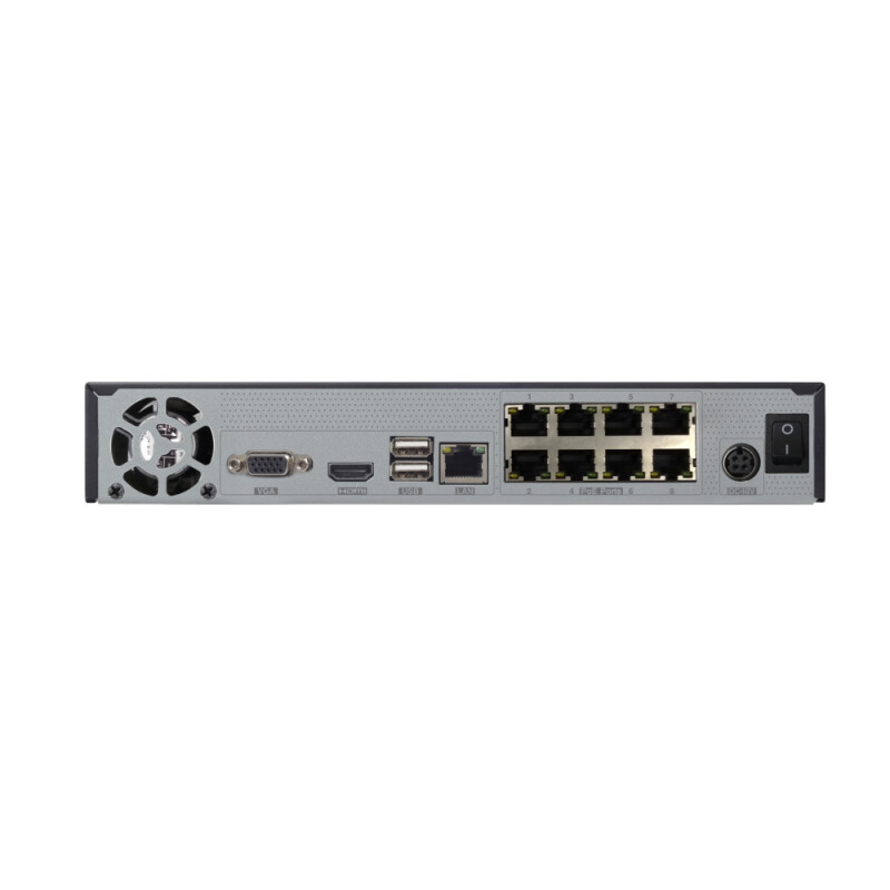 IP-відеореєстратор (NVR) розрахований для підключення до 8-ми IP-камер відеоспостереження з високою роздільною здатністю. Запис відеоархіву ведеться на 1 HDD SATA 3.5" ємністю до 6 ТБ (купується окремо). Стандарт компресії відео H.265+ / H.265 / H.264+ / H.264.
