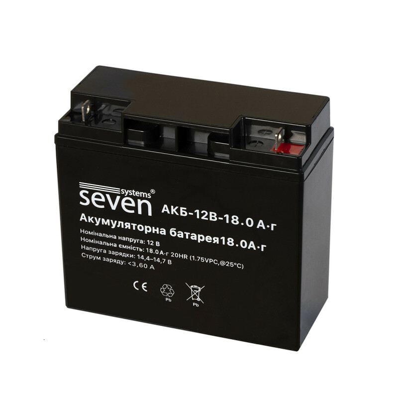 Акумуляторна батарея SEVEN 12В/18Ач підходить для живлення роутерів, сигналізацій, контролю доступу, відеоспостереження та відеодомофонів.
