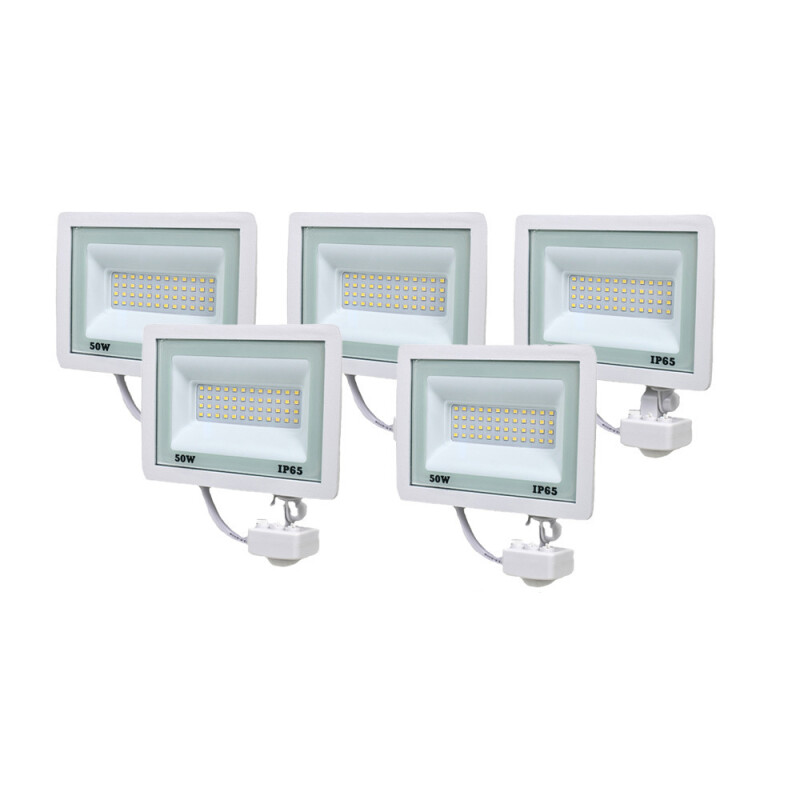 Комплект складається з 5 світлодіодних прожекторів Lightwell 50W з датчиком руху (LW-FL-W-50-S)