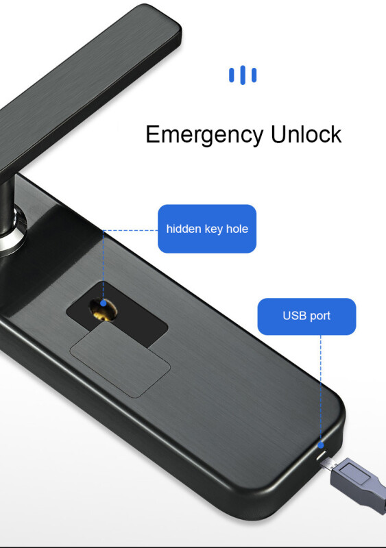 Є аварійне відкриття через micro-USB або за допомогою механічного ключа, а також сповіщення про низький заряд.
