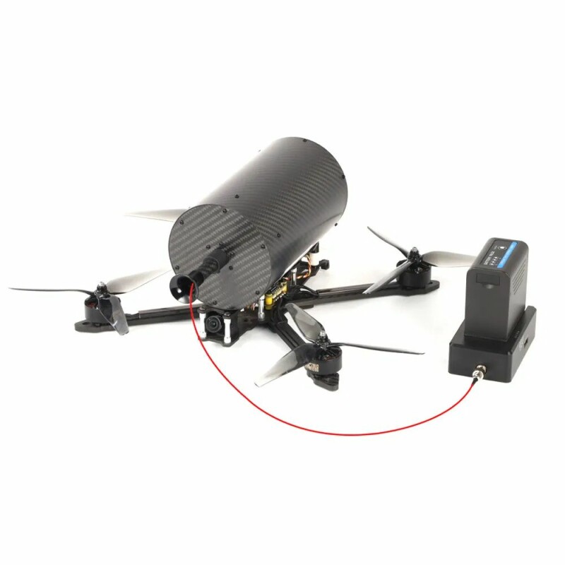 Наземна станція управління – це спеціалізоване рішення для управління безпілотними літальними апаратами (дронами) з використанням оптоволоконного з'єднання. Основна перевага використання оптичного кабелю – це стійкість до засобів радіоелектронної боротьби (РЕБ), тобто імунітет до перешкод, які можуть вивести з ладу звичайні радіокеровані дрони. Станція служить "посередником" між пультом управління та дроном, перетворюючи та обробляючи сигнал, отриманий з безпілотника. Станція має компактні розміри та комплектується акумулятором живлення.