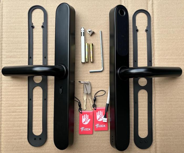 Сканер відбитків пальців інтегрований у ручку, забезпечує миттєве відкривання (<0,3 секунди). Додатково є сенсорна клавіатура, RFID-карти/брелоки Mifare 13,56 МГц, Bluetooth та підтримка Wi-Fi (через шлюз). Замок підходить для встановлення на двері з товщиною від 35 до 70 мм. Легкий монтаж без прокладання проводів.