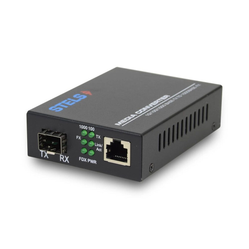 Медіаконвертер STELS 10/100/1000-TX RJ45 + 100/1000-FX SFP-слот є універсальним пристроєм, призначеним для інтеграції мережевих сегментів, що використовують різні типи кабелів. Він забезпечує сумісність між сегментами на основі мідної витої пари (RJ45) і оптоволоконними лініями зв'язку (SFP-слот). Це робить його ідеальним рішенням для побудови гібридних мереж, де потрібне об'єднання мідних і оптичних технологій передавання даних.