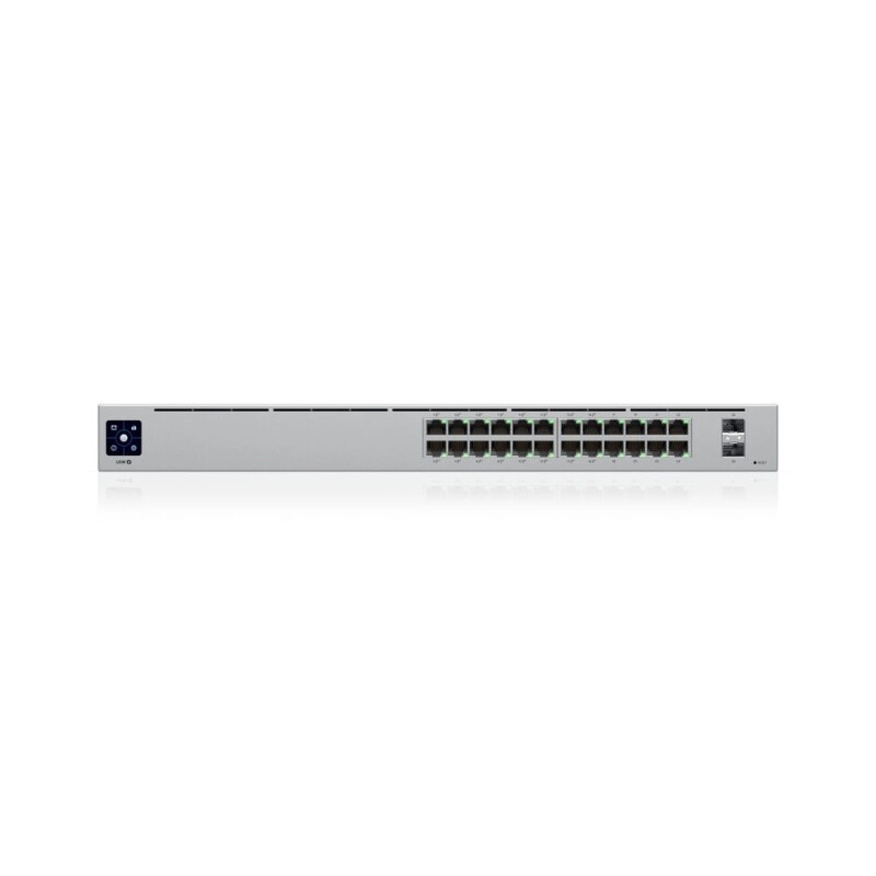 Керований комутатор UniFi Switch 24 (USW-24) має 24 порти Gigabit Ethernet і два порти SFP. Оснащений 1,3-дюймовим сенсорним екраном LCM для відображення інформації про стан системи та з'єднання. Компактний корпус може бути легко встановлений у стійку SOHO. Призначений для мереж із високим рівнем навантаження, де відбуватиметься цілодобовий обмін великими обсягами трафіку.