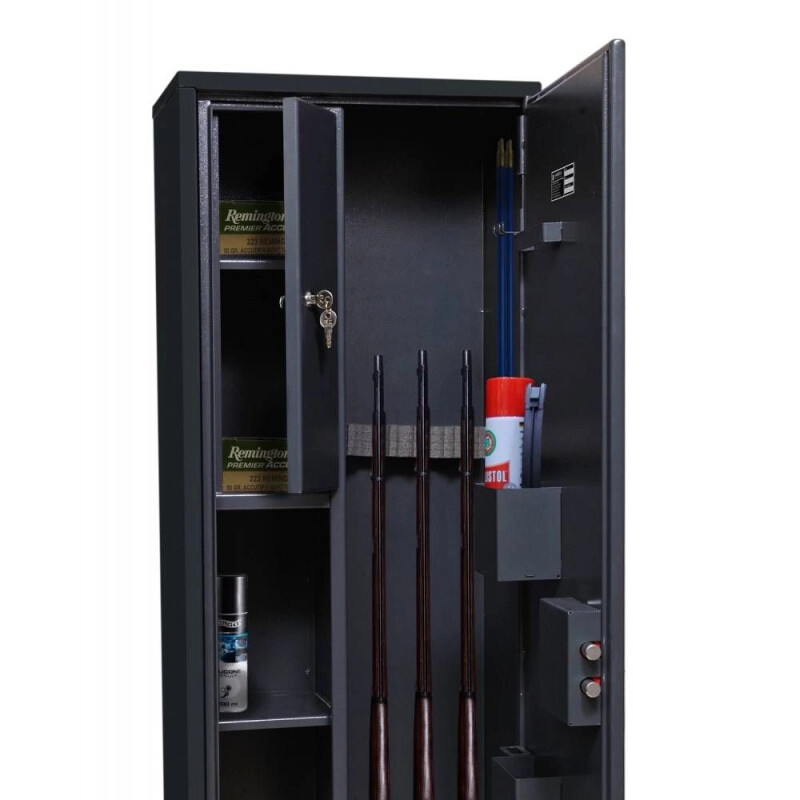 Сейф збройовий GLST.130.Fingerprint з біометричним замком для зберігання 4 рушниць, трейзером та 3 полицями.