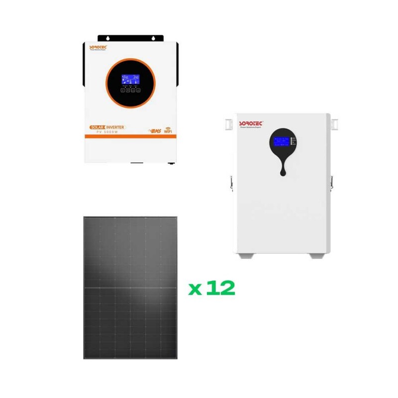 Сонячна станція Sorotec 5 кВт (12 сонячних панелей, інвертор 6 кВт та акумулятор LiFePO4 51,2В)