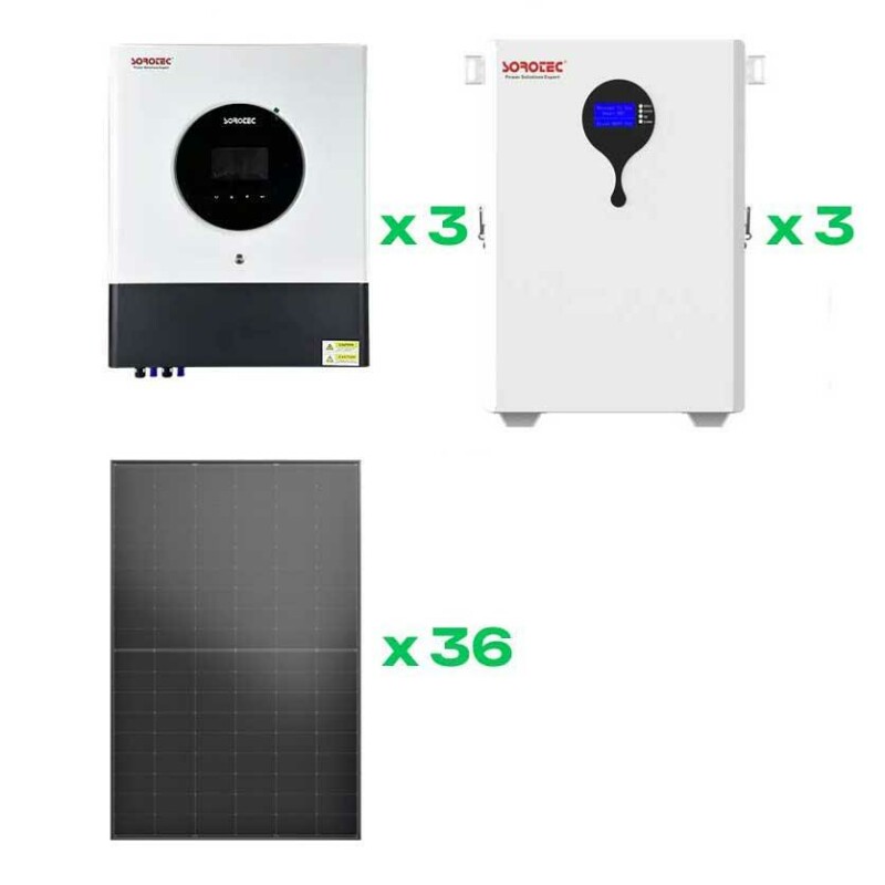 Сонячна станція Sorotec 15 кВт (36 сонячних панелей, 3 інвертори 6 кВт та 3 акумулятори LiFePO4 51,2В)