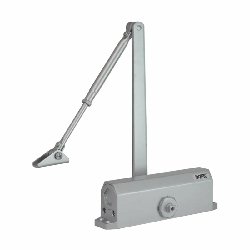 Дверний доводчик Dortec DT-65 Silver зі складаним важелем. Маса дверного полотна 85-120 кг.