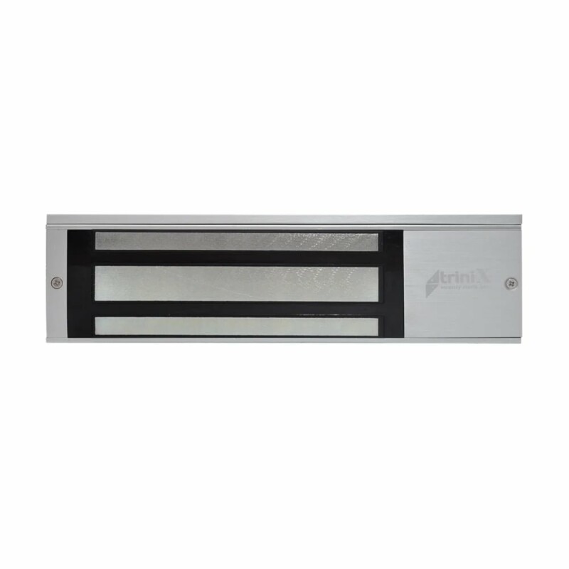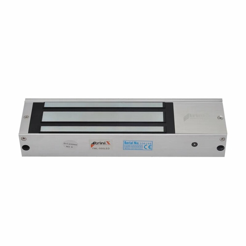 Електромагнітний замок Trinix TML-500LED з силою утримання до 500 кг. Живлення 12/24 В, споживання 750 мА. Вбудований таймер затримки від 0 до 30 секунд, світлова індикація. Накладний монтаж.