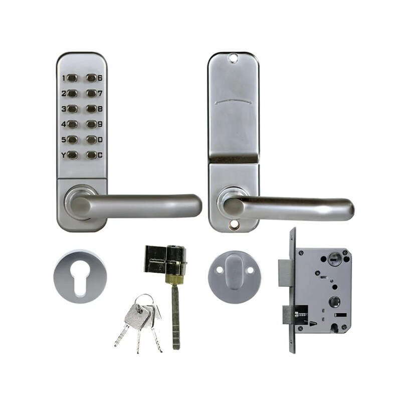 Механічний кодовий замок Trinix TRL-6104MPW з можливістю відімкнення за допомогою коду або ключа. Не потребує живлення. Клас захисту IP66.
