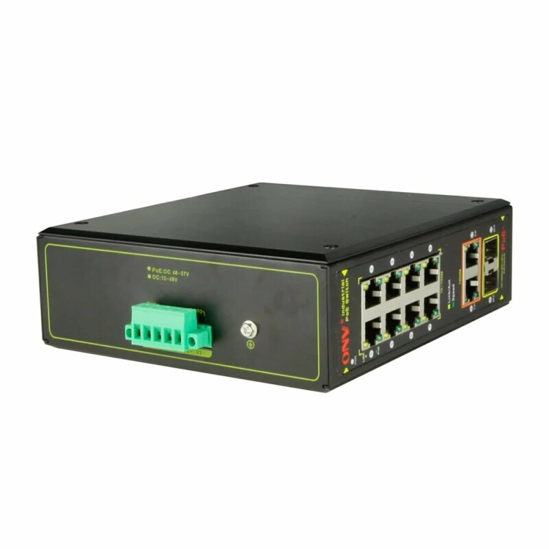 Комутатор PоE гігабітний ONV-IPS7108PF оснащений 10 портами PoE 10/100/1000M RJ45, а також 2 гігабітними портами SFP. Стандарт живлення PoE IEEE802.3af/at. Максимальна вихідна потужність на один PoE-порт 30 Вт. Відстань PoE: до 100 м.