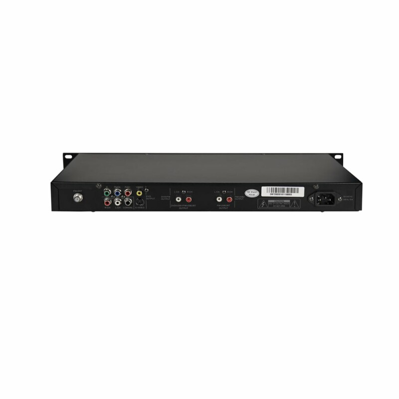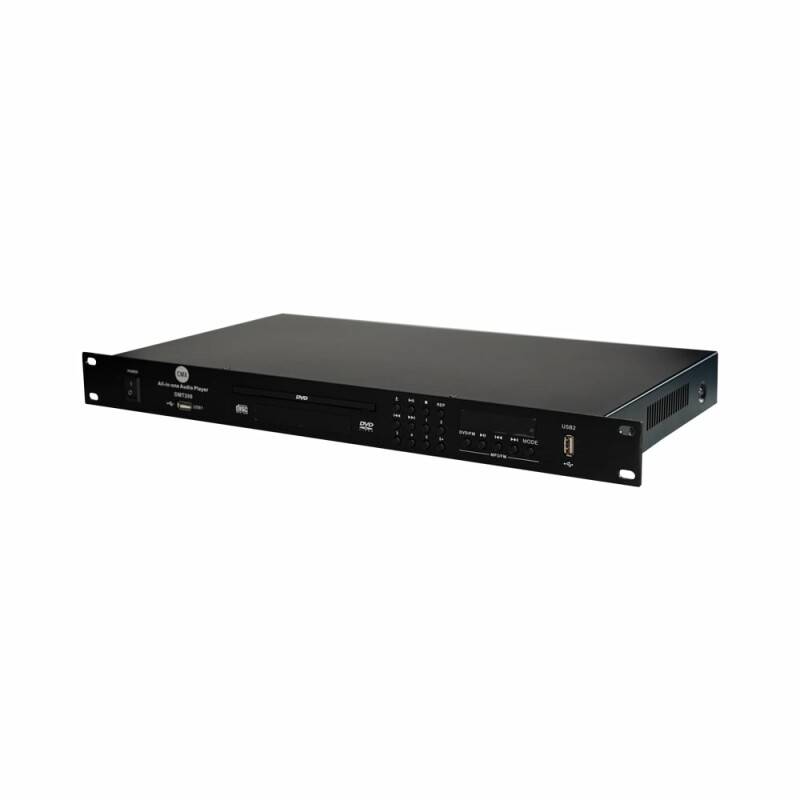 CD-плеєр CMX DMT200, 19", для монтажу в стійку. CD/DVD-плеєр із двома USB, підтримкою FM і Bluetooth. Універсальний програвач для системи оповіщення та фонового музичного супровіду.Підтримує формати CD/MP3/MP4/VCD/DVD/FM, Bluetooth. З інфрачервоним бездротовим пультом дистанційного керування для вибору джерела та регулювання гучності. З двома окремими лінійними стереовиходами для DVD/USB1 і FM USB, стеріовихід DVD і коаксіальний вихід.